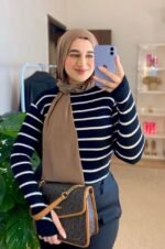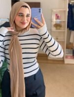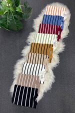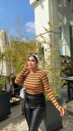 كنزة/بلوزة “هاف كول” المضلعة (Ribbed Mock Neck Top) بتصميم مخطط كلاسيكي