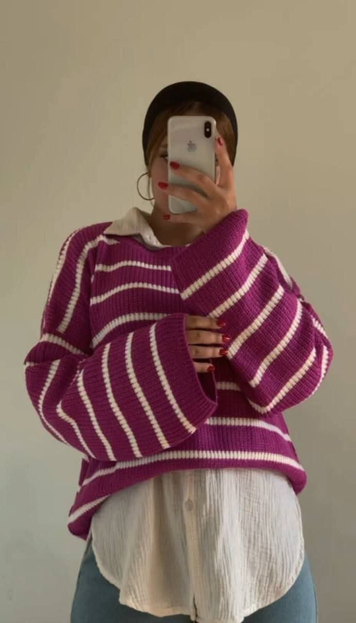 بلوزة/ كنزة تريكو “الدفء الفضفاض” المخططة (Oversized Cozy Sweater)