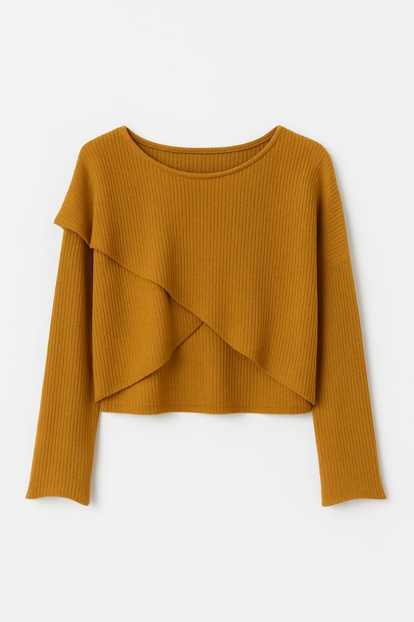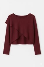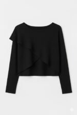 تصميم عصري: قصّة كروب (Crop) أنيقة مع تفصيلة الكسرات المتقاطعة عند الصدر.