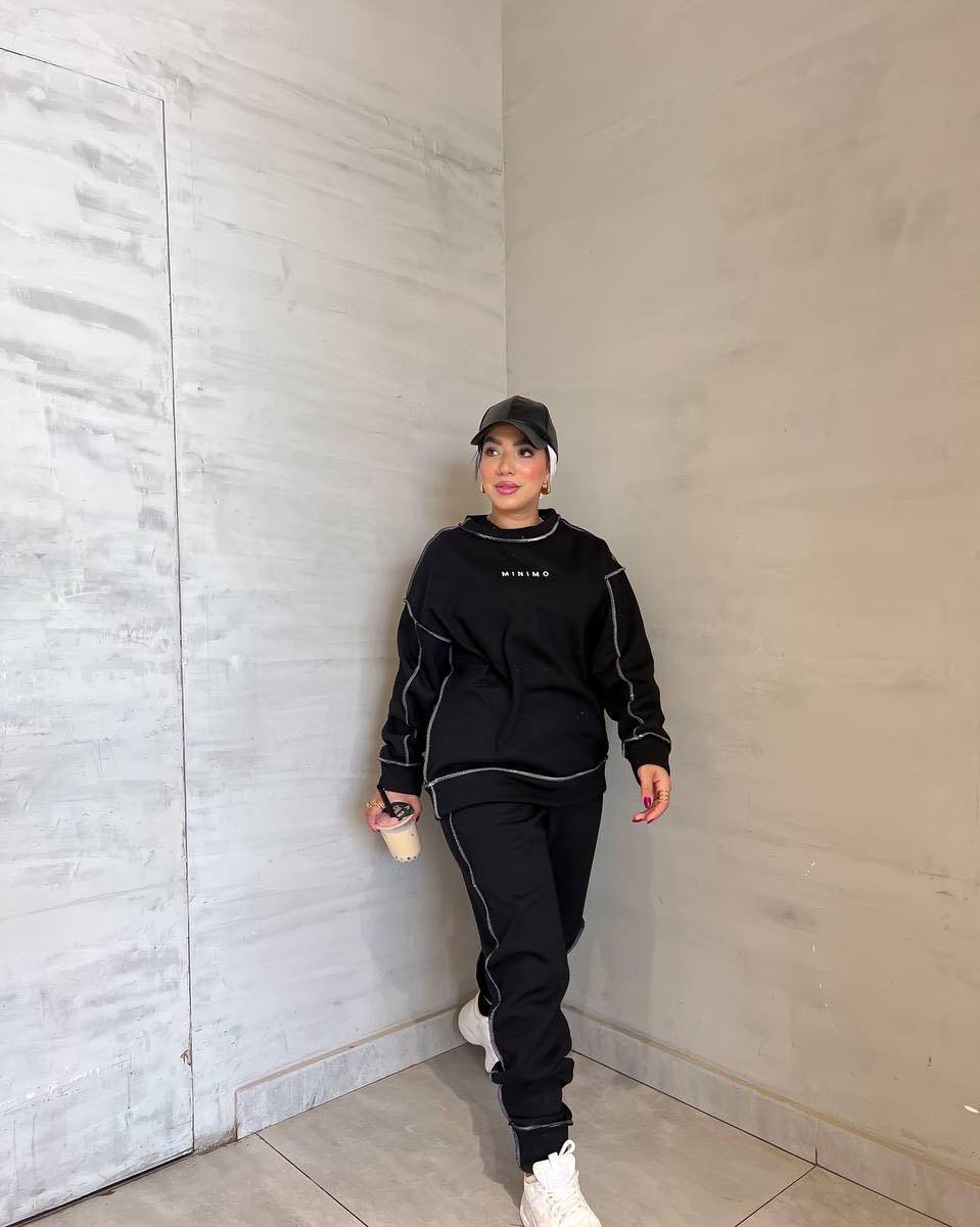- يمكن ارتداؤه بمفرده، أو تنسيقه مع بنطال رياضي واسع (كما في الصورة)، جينز واسع، أو ليغينغز لإطلالة Sporty Chic أو Comfy Casual.