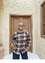 - شميز جاكيت نسائي واسع (Oversized Shacket) بـنقشة الكاروهات (Plaid). وقصة واسعة (Oversized Fit) يمكن ارتداؤه كقميص سميك أو كجاكيت خفيف (Shacket). يتميز بياقة كلاسيكية وأزرار أمامية وجيوب على الصدر. مزين بـ نقشة الكاروهات الكبيرة (Buffalo Plaid) بلونين متناسقين، مما يضيف طابعاً خريفياً شتوياً أنيقاً وRUSTIC. مصنوع من قماش صوف سميك وناعم (Wool Blend/Flannel), يوفر الدفء المطلوب في الأجواء الباردة وملمسه مريح.